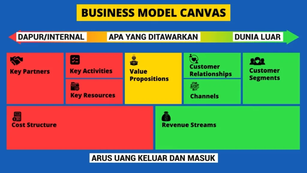 Dalam bisnis model kanvas ini Anda perlu memetakan 9 komponen penting yang saling terkait, yaitu;